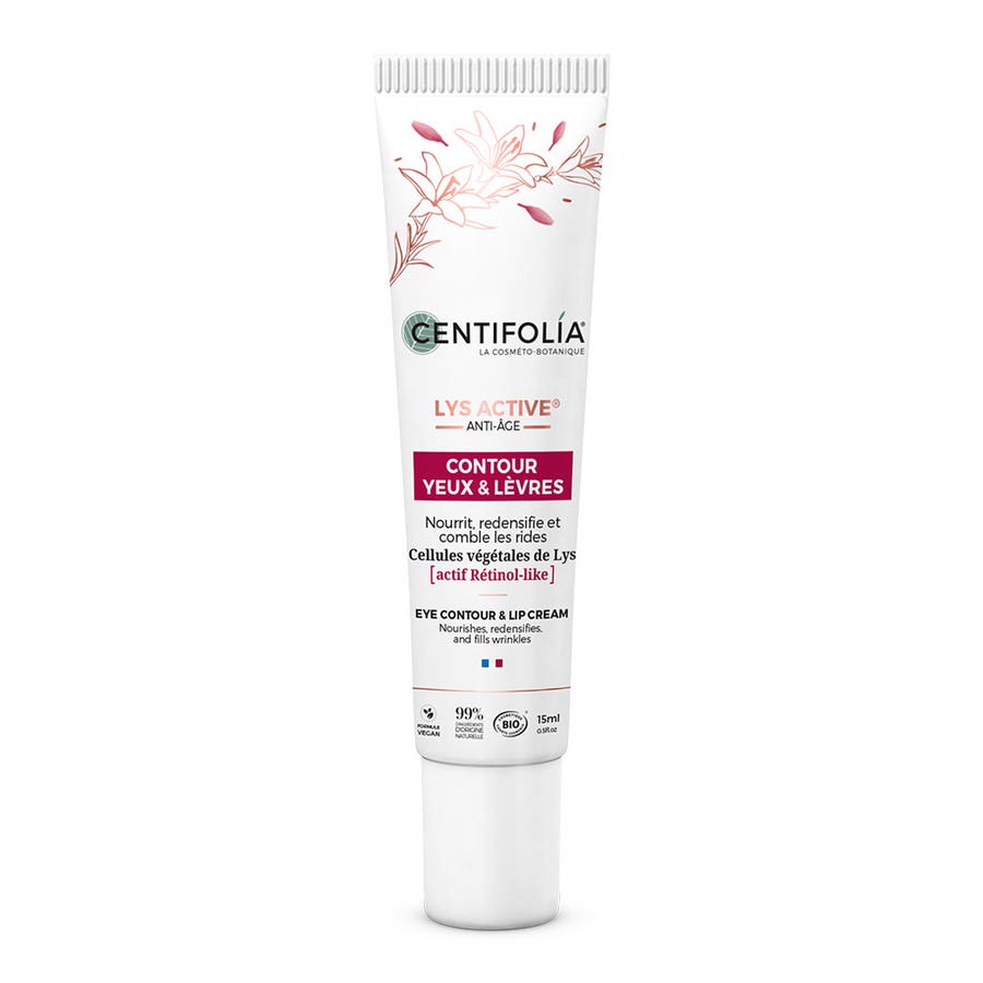 CENTIFOLIAActive LilyEye and Lip ContourNourishes, replenishes, fills inOrganic CosmeticsVeganMature, sensitive skin15mlThis 2-in-1 Anti-Age Care provides localised action to reduce the most visible signs of ageing. Day after day, the skin is hydrated and nourished, wrinkles and fine lines are filled in for a visibly younger-looking eye and lip contour. Suitable for sensitive skin. Dermatologically tested.
