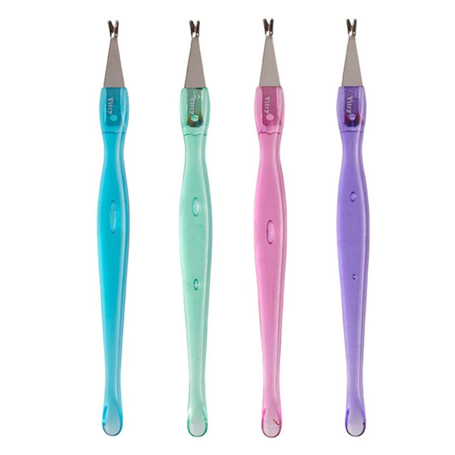 VITRYSkin cutterRef 46 2 in 1, the Vitry Skin Clipper quickly removes unsightly cuticles andpushes away small skins around the nail.Its V-shaped blade cuts small skins precisely for clean, neat, well-groomed nails.Colouring subject to stock availability.